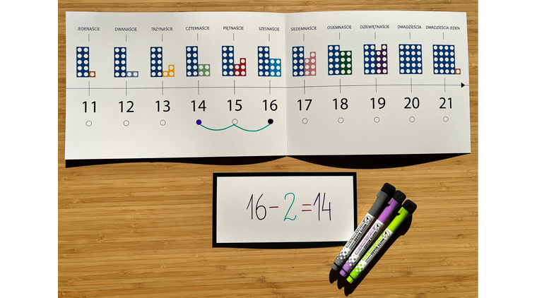 - planszę z osią liczbową od 11-21
