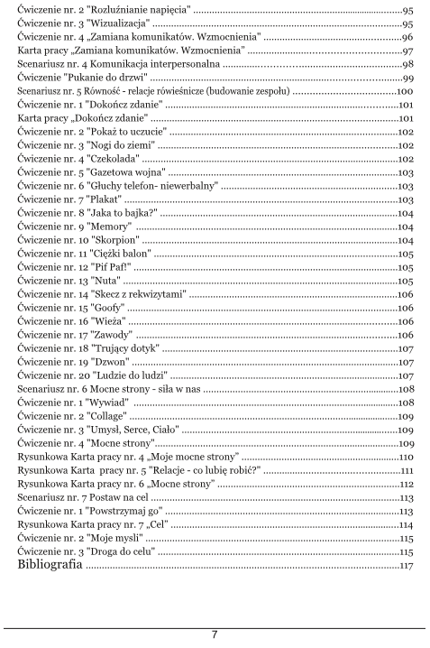 - To pozycja dla praktyków - nauczycieli, trenerów, pedagogów, psychologów prowadzących zajęcia wychowawcze, socjoterapeutyczne, treningi umiejętności społecznych (TUS) oraz wszystkie inne formy pracy zespołowej, której celem jest pomoc dziecku. Pomoc dziecku mającemu problemy z własną agresywnością, lękiem, utrudnioną komunikacją interpersonalną, dziecku zagrożonemu niedostosowaniem społecznym, dziecku sprawiającemu problemy w środowisku społecznym, w którym funkcjonuje.